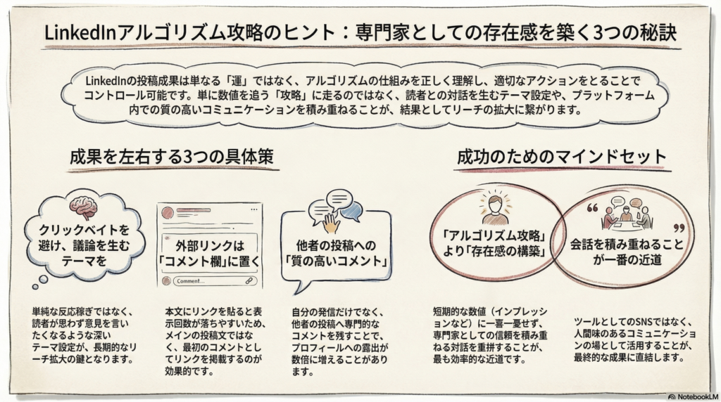 LinkedInの投稿は「運」に左右されるように感じることはありませんか。実際にはアルゴリズムの仕組みを知ることで、成果を左右するポイントが見えてきます。