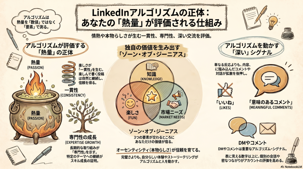 結論として、LinkedInのアルゴリズムは熱量を数値で測ってはいません。